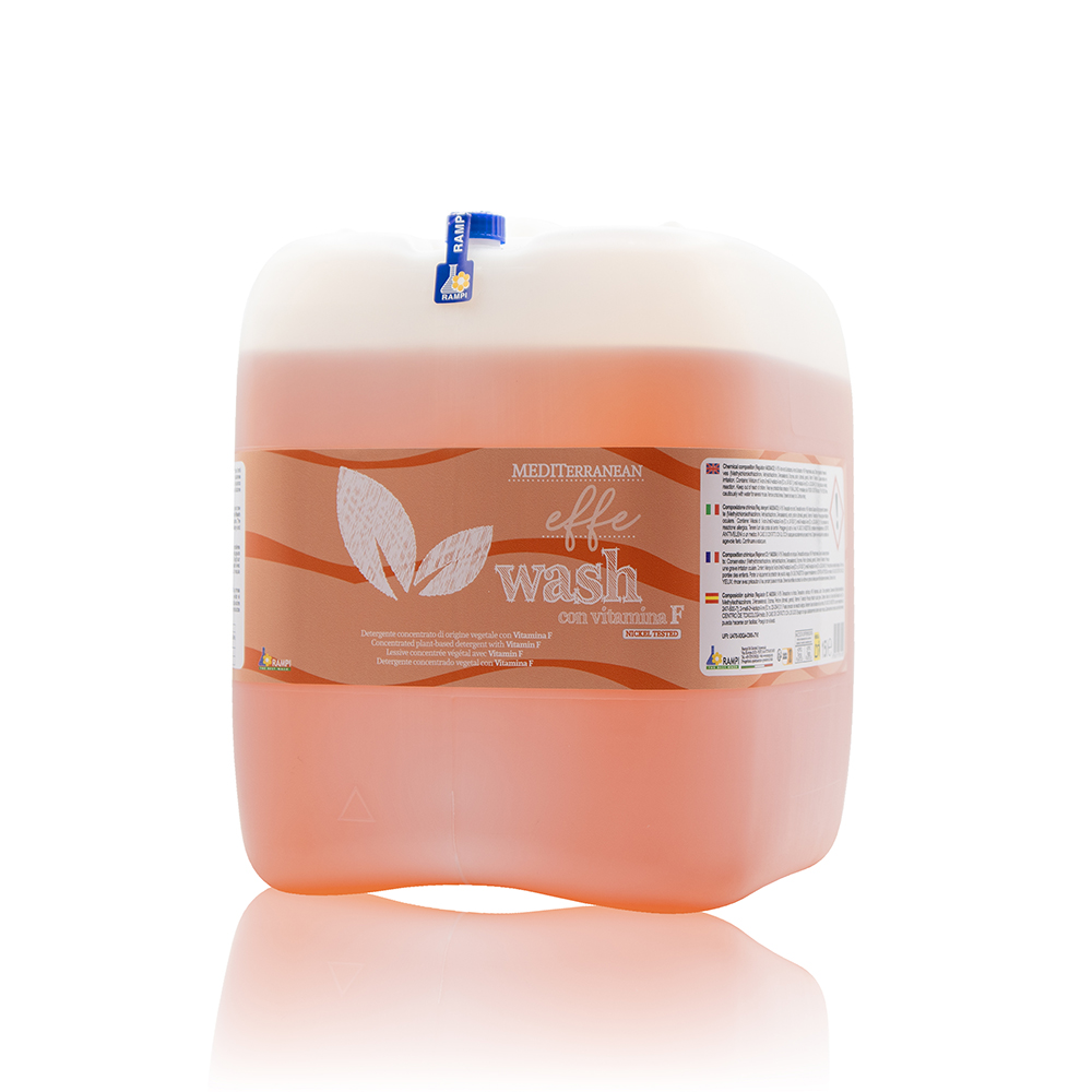 MEDIT EFFE WASH est utilisé en machine à laver, les doses variant en fonction de la dureté de l’eau et du degré de saleté, et sont calculées pour 5 kg de linge ou à la main dans 10 litres d’eau. Le bouchon doseur contient environ 30 ml.