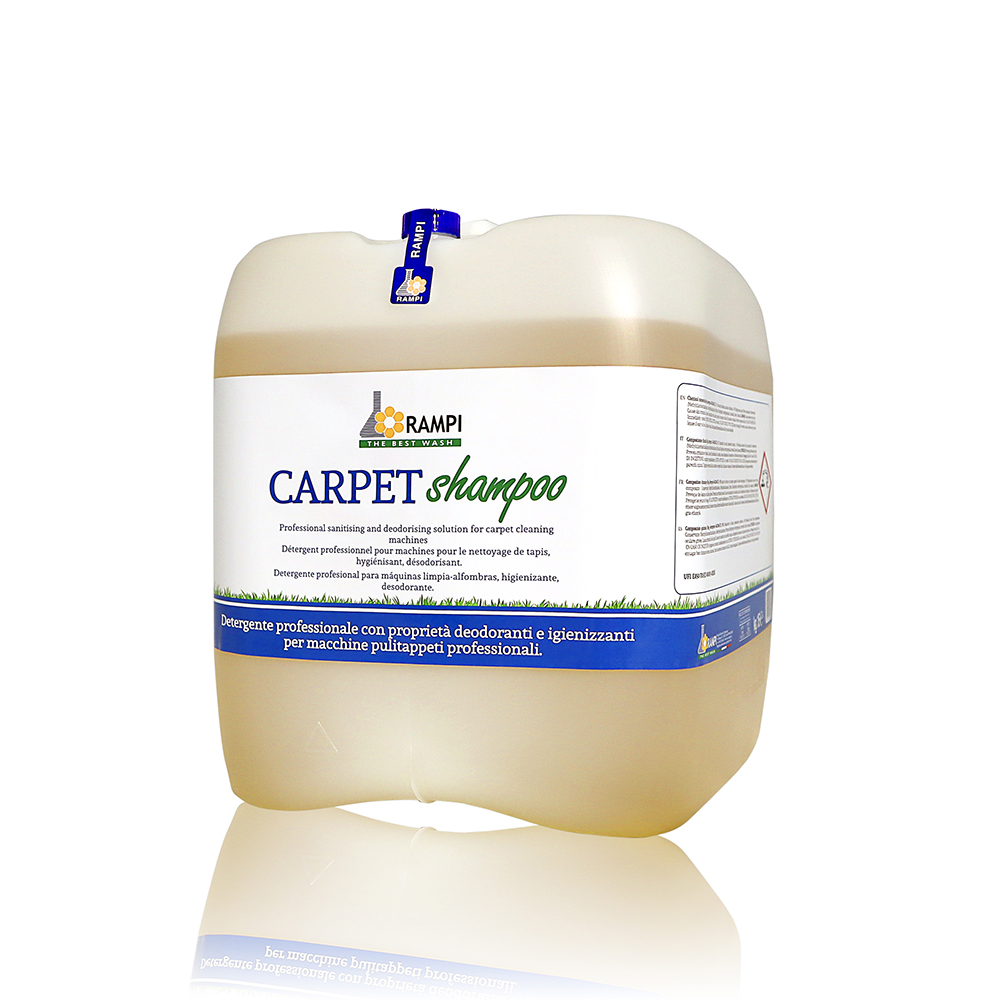 CARPET SHAMPOO è un detergente professionale per macchine lavatappeti . Igienizza e ridona una gradevole profumazione alle fibre dei tappeti grazie alla presenza in formula della molecola “Blocca Odori” che elimina qualsiasi odore sgradevole anche quello da animali domestici. Attivo su un ampio spettro di macchie , CARPET SHAMPOO rispetta le fibre , evita la migrazione del colore e mantiene la brillantezza dei colori .