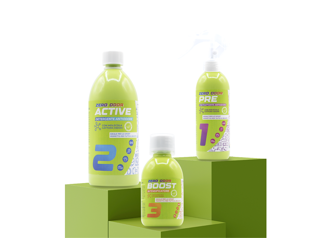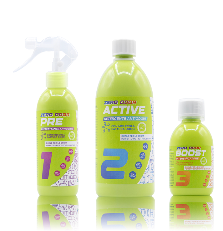ZERO ODOR ACTIVE è un detergente igienizzante ipoallergenico indicato per il lavaggio, a mano o in lavatrice, di capi sportivi e di tutti i tipi di tessuti: cotone, sintetici, bianchi e colorati.