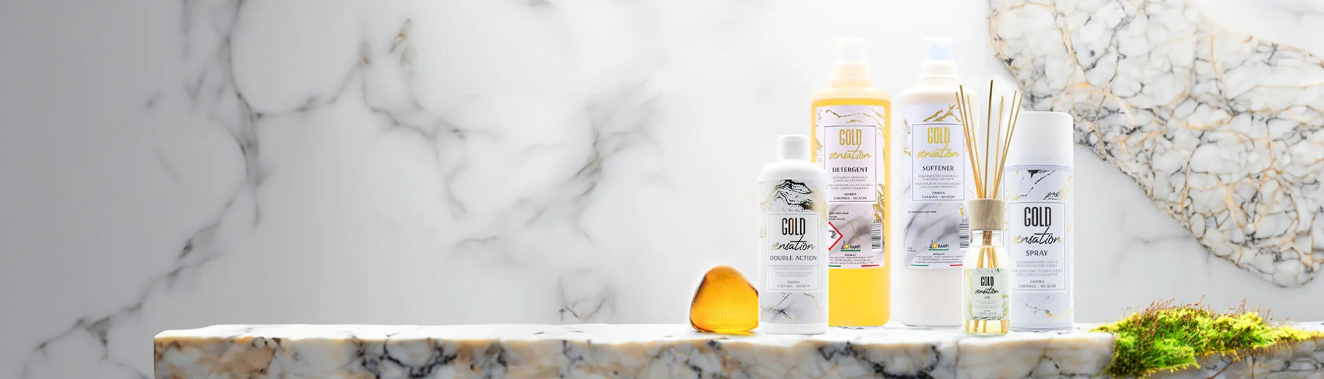 Gold Sensation è pensata per chi vuole risultati concreti sul bucato e, allo stesso tempo, una profumazione riconoscibile e avvolgente. La linea comprende prodotti concentrati ed è ricaricabile alla spina.
